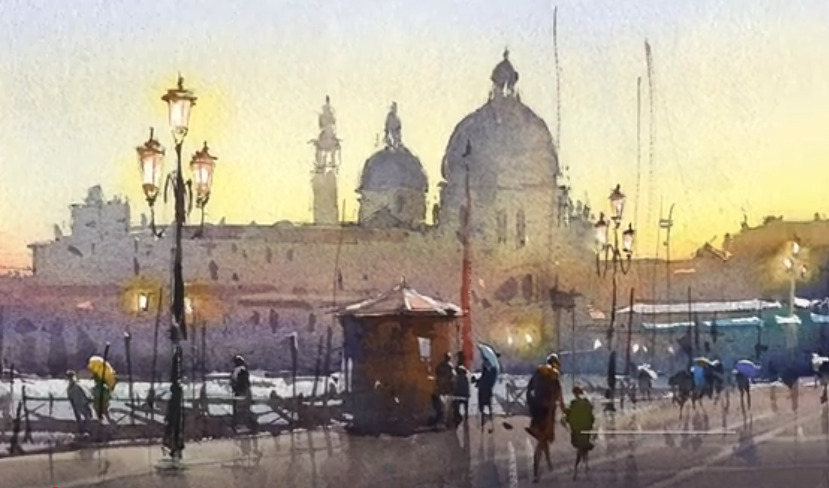| definition | Cerulean sky Maybe Viridian water, at least in part. Shaded dome 2CG2 Sunlet Dome 2 CG four. Burnt sienna roof tiles. Sunlit building surface white. Need a light cool gray for building in shade. Santa Maria della Salute (English: Saint Mary of Health; Venetian: Bazéłega de Santa Maria de ła Sałute), commonly known simply as La Salute (Italian: [la saˈluːte]), is a Roman Catholic church and minor basilica located at the Punta della Dogana in the Dorsoduro sestiere of the city of Venice, Italy. Three color black has a Cousin. The same components when applied as super thin individual washes looks white. Adjacent washes Cerulean sky Maybe Veridian water, at least in part. Shaded dome 2CG2 Sunlit Dome pattern of adjacent super thin washes of cd yellow ultramarine and aliz crim Burnt sienna roof tiles. Sunlit building surface white. Need a light cool gray for building in shade. Fórcola (Venetian dialect, plural Fórcole) is the typical Venetian rowlock providing a variety of fulcrum positions, each having its own effect on the rower's oar.[1] the gondolier likely uses the highest notch or position on the forcola when at the stern (the traditional gondolier position) for the primary forward propulsion stroke, as this position provides the necessary leverage for a powerful, full-body push, which is essential for moving efficiently in open water. Final notes, the left tower needs modeling on the cylinder below the dome The forcula need to be b umber Add dark modeling to features on the Salute's façade Darken the side buildings to recede more UB wash light Fix the small dome Lighten up the tile roof |